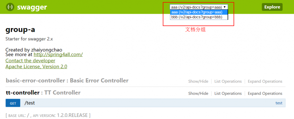 当我们一个项目的API非常多的时候,我们希望对API文档实现分组。从1.2.0.RELEASE开始,将支持分组配置功能。