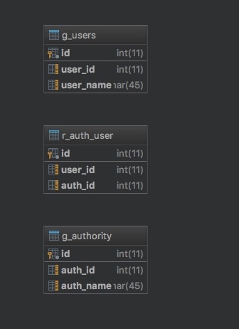 r_auth_user:用户角色信息表,这里没有使用外键约束。
