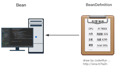 BeanDefinition,从字面意思上翻译成中文就是 “Bean 的定义”。从翻译结果中就可以猜出这个类的用途,即根据 Bean 配置信息生成相应的 Bean 详情对象。举个例子,如果把 Bean 比作是电脑 :computer:,那么 BeanDefinition 就是这台电脑的配置清单。我们从外观上无法看出这台电脑里面都有哪些配置,也看不出电脑的性能咋样。但是通过配置清单,我们就可了解这台电脑的详细配置。我们可以知道这台电脑是不是用了牙膏厂的 CPU,BOOM 厂的固态硬盘等。透过配置清单,我们也就可大致评估出这台电脑的性能。
