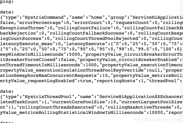 打开 http:// localhost:8762/hystrix. stream ,可以看到一些具体的数据: