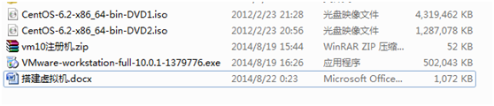 Linux虚拟机ISO:CentOS-6.2-x86_64-bin-DVD1.ISO,CentOS-6.2-x86_64-bin-DVD2.ISO。
