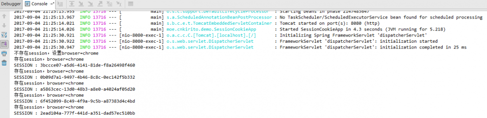 测试登录点沿用上一篇文章的端点,访问 http://localhost:8080/test/cookie?browser=chrome 端点后会出现http basic的认证框,我们输入admin/admin,即可获得结果,也遇到了第一个坑点,我们会发现每次请求,sessionId都会被刷新,这显然不是我们想要的结果。
