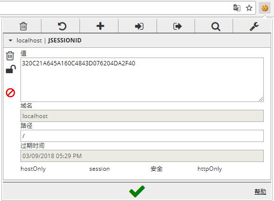 我们使用chrome插件Edit this Cookie,将chrome浏览器中的JSESSIONID修改为360浏览器中的值
