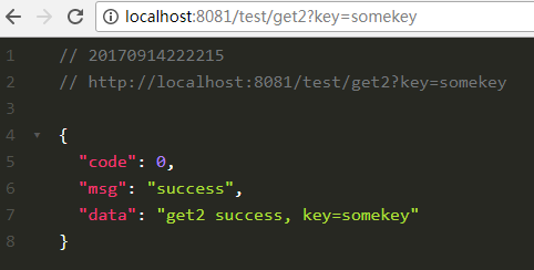 假设我们需要调用另外一个系统提供了的GET请求 http://localhost:8081/test/get2?key=somekey**