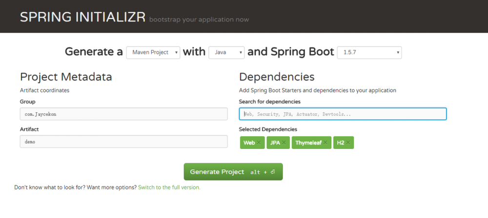 进入官网后,可以快速的构建Spring boot 的基础项目,这里可以选择Maven 项目或者Gradle 项目,然后设置项目相关的配置。