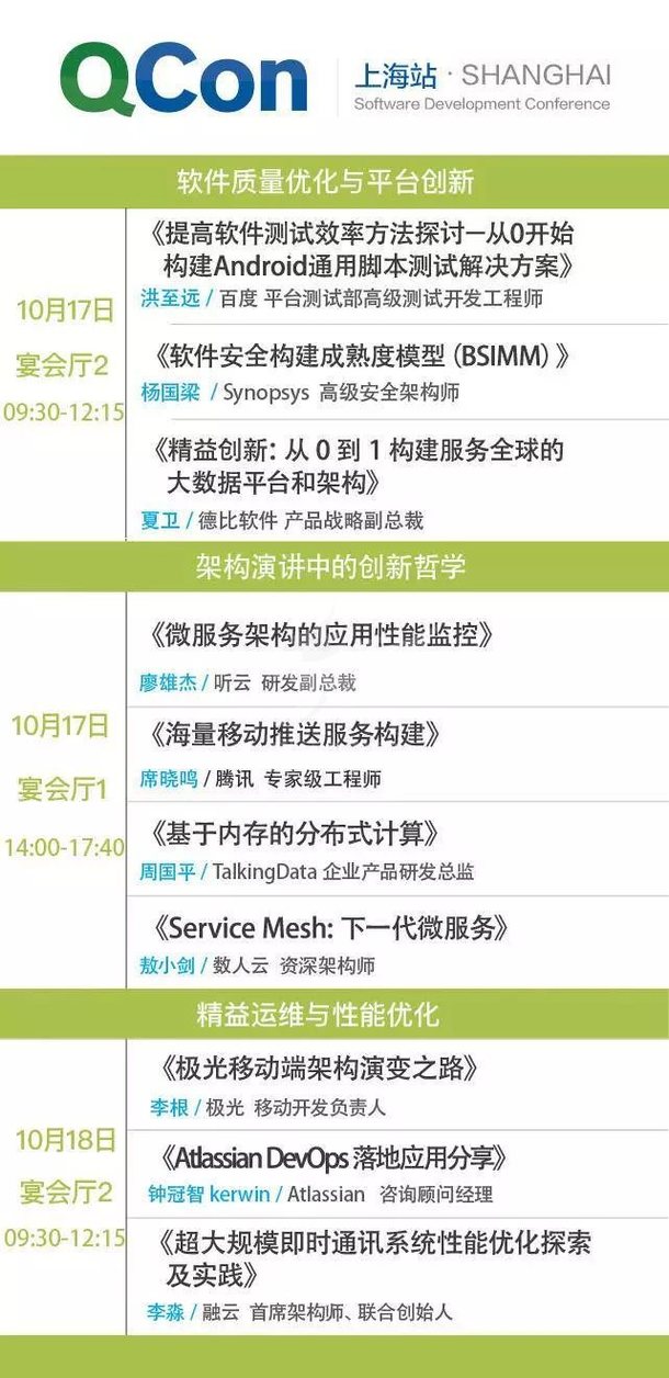 同时,报名 「架构演进中的创新哲学」专场的朋友们,还将同时有机会参与「精益运维与性能优化」、「软件质量优化与平台创新」两大专场免费入场听讲,这一次,免费值了!