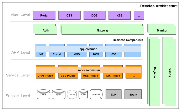 - 业务庞大复杂,我做过电信系统及互联网公司的架构师,相比而言,互联网这点逻辑在电信系统中根本不足一提,一个例子是目前支撑客服系统的服务接口就是2000多个,并且还是封装后的,裸接口估计有上万个之多;