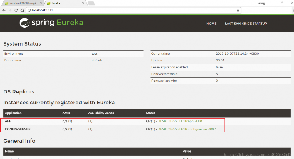 OK,经过以上的改造之后,此时我们分别启动eureka服务注册中心、config-server、config-client,然后访问 http://localhost:1111 ,可以看到两个应用都已经注册成功了: