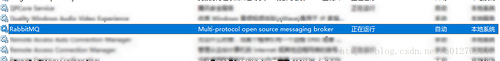 RabbitMQ是用Erlang语言编写的,因此安装RabbitMQ之前我们要先安装Erlang环境,首先去 http://www.erlang.org/downloads 地址下载erlang,下载到的是一个exe文件,直接双击安装即可,然后去 http://www.rabbitmq.com/download.html 地址下载RabbitMQ,下载成功之后,也是一个exe,双击安装即可(我在网上看到有人说安装目录不能有空格,我自己的软件安装目录都是没有空格的,所以没去验证这句话真假,小伙伴们注意下别掉坑里了)。RabbitMQ安装成功之后,默认会创建系统服务,将和Windows系统一起启动。所以安装成功之后,打开系统服务,我们如果看到如下结果表示安装成功了: