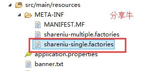 首先,我们新建一个 shareniu-single.factories文件,该文件的目录结构如下图所示: