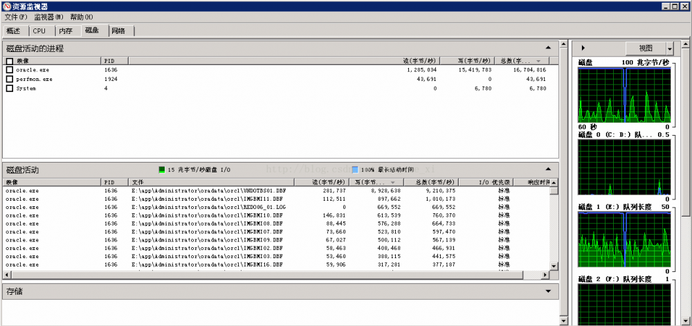 登录数据库服务器,查看资源使用情况,IO比较高,CPU及内存正常: