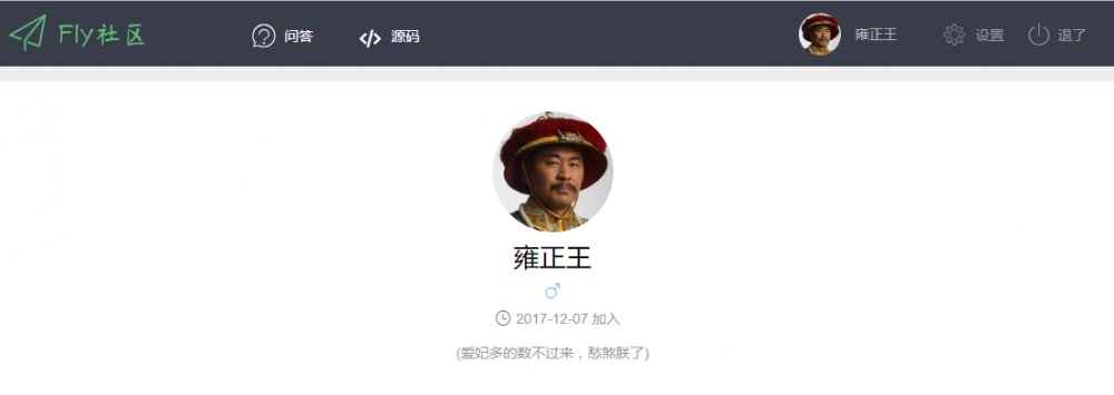 首先,为了让数据更贴近实战,所以我用了比较“真实”的用户数据。结合fly模板,完善了用户中心头部的用户信息的数据绑定。数据绑定部分判断了是否已经是好友,来决定是否出现“加为好友”的按钮。示例如下,当用户自己看到自己的主页时,是这样的: