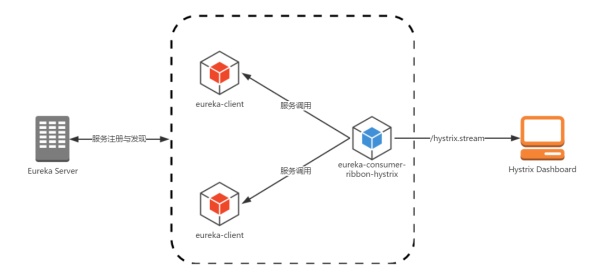 eureka-consumer-ribbon-hystrix 服务的Hystrix数据 下面,我们将在上述架构基础上,引入Turbine来对服务的Hystrix数据进行聚合展示。这里我们将分别介绍两种聚合方式。