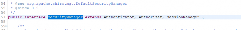 SecurityManager:含义为安全管理器。SecurityManager是整个Shiro的核心所在,它负责对所有的Subject进行安全管理,我们在通过Subject进行授权和认证的时候,Subject其实是通过SecurityManager来实现具体业务逻辑的。SecurityManager在Shiro中是通过一个接口来体现的,而且它继承了Authenticator,Authorizer,SessionManager。如下图: