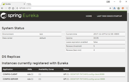 启动 spring-cloud-eureka-service , spring-cloud-config-server-eureka-provider , spring-cloud-config-client-consumer 三个项目