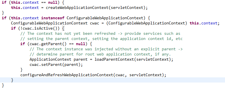Spring的启动是通过ContextLoaderListener来进行的,在ContextLoaderListener中通过委托父类ContextLoader的initWebApplicationContext来完成具体的初始化过程。具体的启动过程可以看下之前的那篇文章。