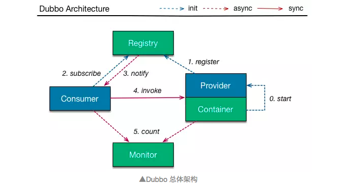 Dubbo 核心部件,如下图所示: