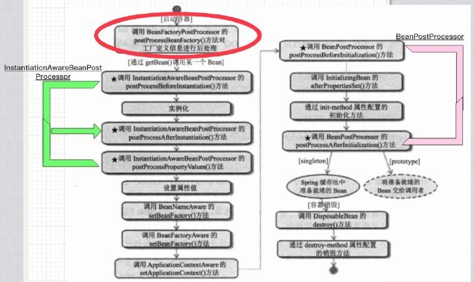 输出为: 这是BeanFactoryPostProcessor实现类构造器!! BeanFactoryPostProcessor调用postProcessBeanFactory方法 这是InstantiationAwareBeanPostProcessorAdapter实现类构造器!! 这是BeanPostProcessor实现类构造器!! InstantiationAwareBeanPostProcessor调用Before方法 InstantiationAwareBeanPostProcessor调用postProcessPropertyValues方法 BeanNameAware...... BeanFactoryAware...... ApplicationContextAware...... BeanPostProcessor接口方法Before对属性进行更改! InitializingBean...... InstantiationAwareBeanPostProcessor调用Ater方法 BeanPostProcessor接口方法After对属性进行更改!