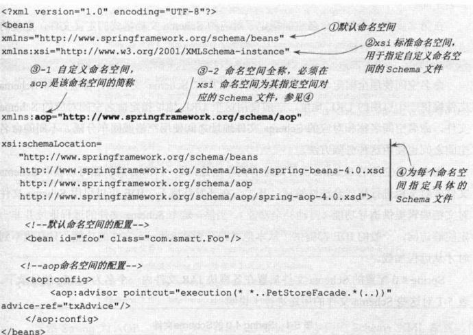xmlns属性定义命名空间,命名空间就是所有文件定义bean时带的前缀,像 aop:config ,这个标签的aop就是aop命名空间 ,没有加命名空间,就是默认的命名空间.