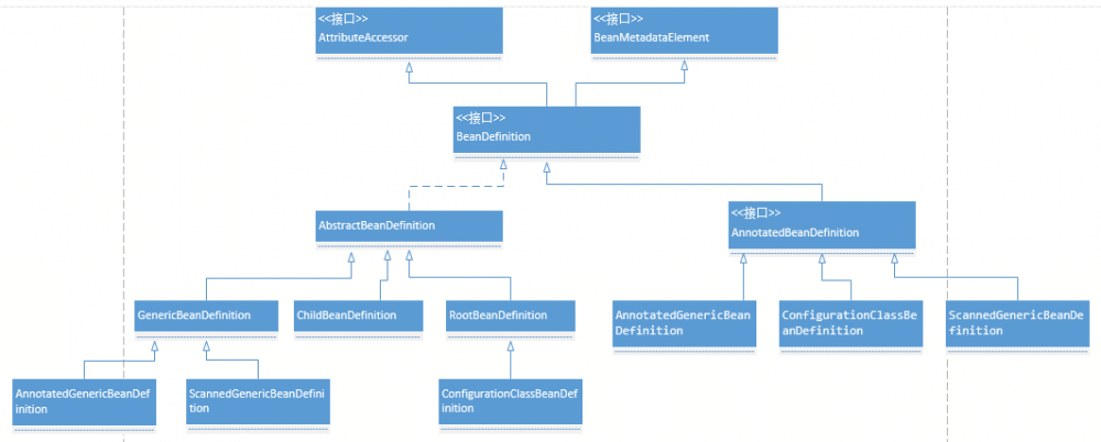 从类图中可以看出,BeanDefinition继承了AttributeAccessor和BeanMetadataElement两个接口;一个一个看。