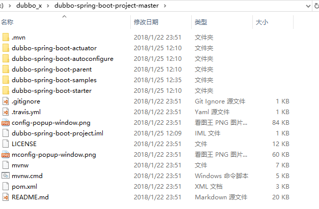昨天在网上发现了dubbo社区发布了Dubbo Spring Boot Starter 1.0.0 公测版, https://github.com/dubbo/dubbo-spring-boot-project 使用了springboot来开发,感觉应该很不错,然后就去试了下,发现dubbo-spring-boot-starter 底层依赖 Dubbo 2.5.9而2.5.9那个时候还没发布,今天再去github一看,竟然发布了,果断的下了个官方的demo: https://github.com/dubbo/dubbo-spring-boot-project/tree/master/dubbo-spring-boot-samples 下载下来之后,通过maven安装到本地: