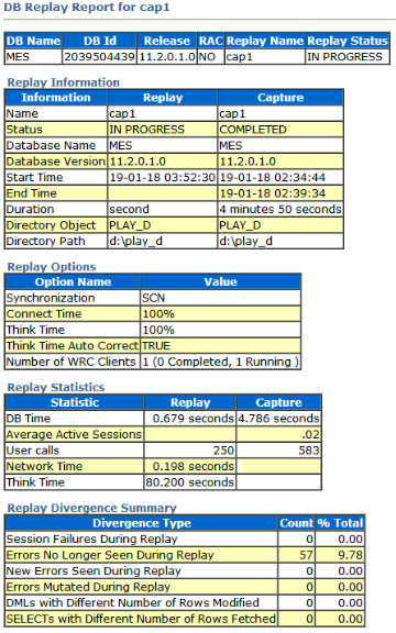 select dbms_workload_replay.report(1, 'HTML') from dual;