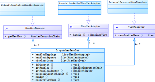 注解, 那么spring 启动时会调用AnnotationDrivenBeanDefinitionParser.parse解析<mvc:annotation-driven/>注解,然后为我们注册HandlerMapping, HandlerAdapter,ViewResolver 这三大组件。