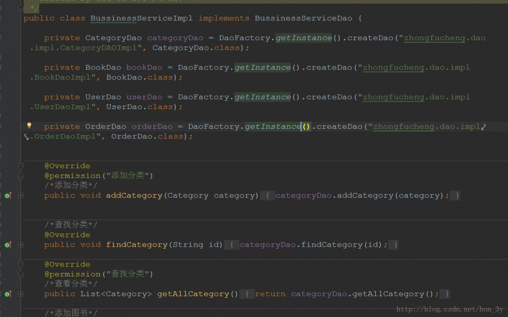 private CategoryDao categoryDao = DaoFactory.getInstance().createDao("zhongfucheng.dao.impl.CategoryDAOImpl", CategoryDao.class);