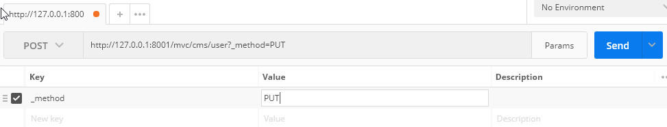 POST是真正的请求方式,传递一个"_method"名的参数,赋值为PUT或者DELETE(不区分大小写),看控制台执行的方法