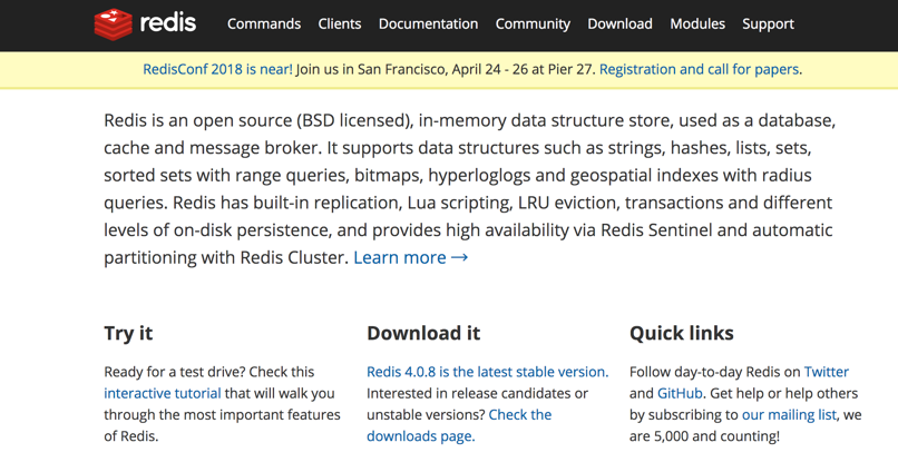 wget http://download.redis.io/releases/redis-4.0.8.tar.gz tar xzf redis-4.0.8.tar.gz cd redis-4.0.8 make