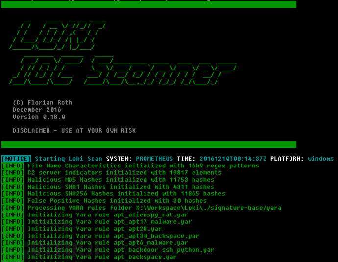 usage: loki.exe [-h] [-p path] [-s kilobyte] [-l log-file] [-r remote-loghost]