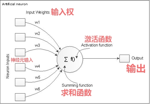 人造神经元接收一个或多个输入(代表树突)并将它们相加以产生输出/ 激活 (代表神经元的轴突)。一般来说每个节点的总和被加权,总和通过激活函数或传递函数传递。