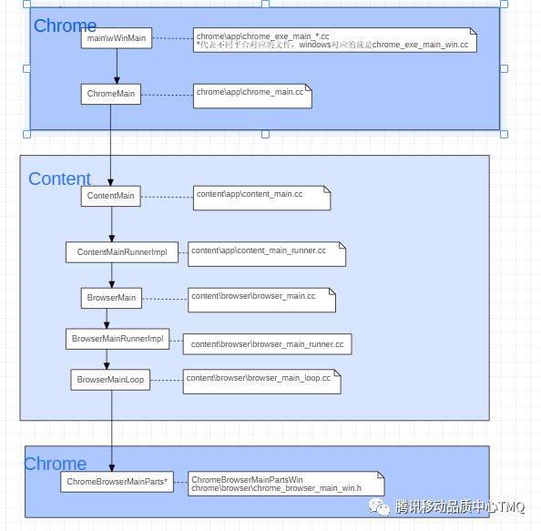 下图是Chromium中浏览器启动时候的代码顺序: