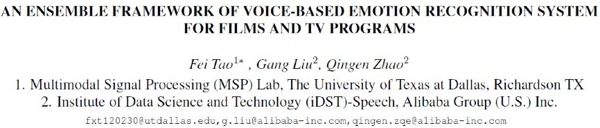 语音领域的顶会 ICASSP 2018 将于 4 月 15-20 日在加拿大阿尔伯塔卡尔加里市举行。据机器之心了解,国内科技巨头阿里巴巴语音交互智能团队有 5 篇论文被此大会接收。本文对论文《An Ensemble Framework of Voice-Based Emotion Recognition System for Films and TV Programs》进行了介绍。