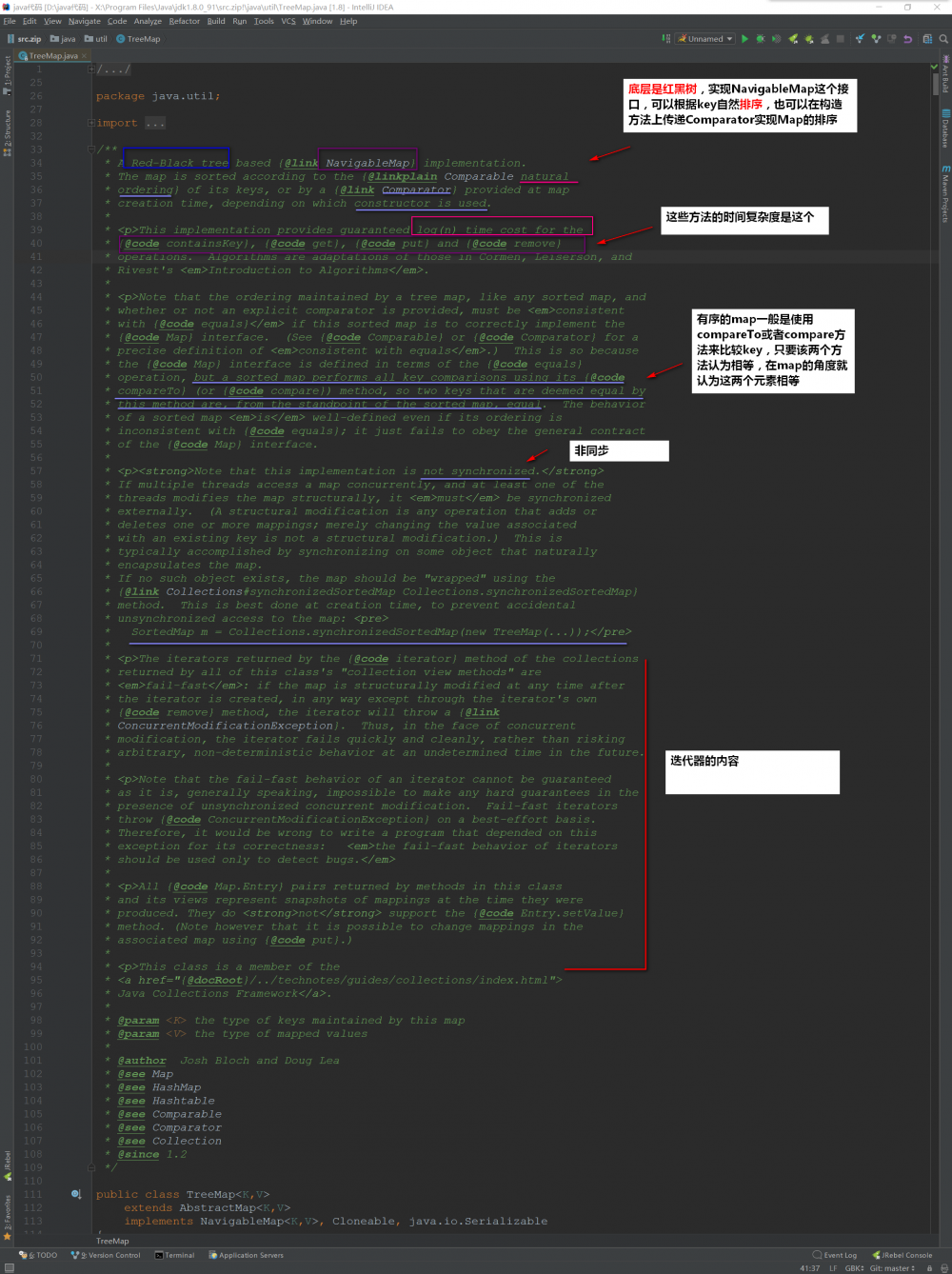 我们从源码中的很多地方中发现:Comparator和Comparable出现的频率是很高的,因为TreeMap实现有序要么就是外界传递进来Comparator对象,要么就使用默认key的Comparable接口(实现自然排序)