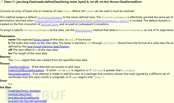 首先看一下defineClass的官方定义