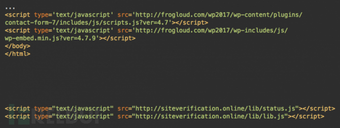 除了我们在 frogloud[.]com 上发现的“ status.js ”和“ lib.js ”文件之外,还有一些其他的变体,如“ info.js ”,“ stat.js ”,甚至 一些直接的iframe注入。