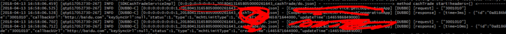 好了,说了这么多,下面正式进入正题。我们可以想这么一个问题,在多线程环境中如何对每一条线程的生命周期进行跟踪,跟具体地说,在 web 项目中,我们通常会对某一个请求从进入系统到退出系统的整个生命周期进行日志记录,又或者说是对一个事务的全过程进行跟踪记录,通常的做法是采用为每个线程建立一个叫 transactionId 的值,用于标识每个线程并进程跟踪,下图红圈即为 transactionId 的值。