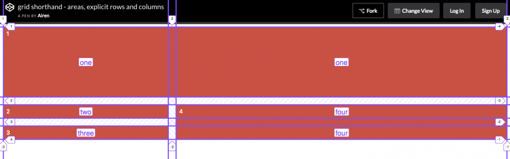 如果不需要,我们不需要指定区域。我们可以使用 grid 的简写来定义显式的行和列。下面两个代码片段基本上是在做相同的事情: