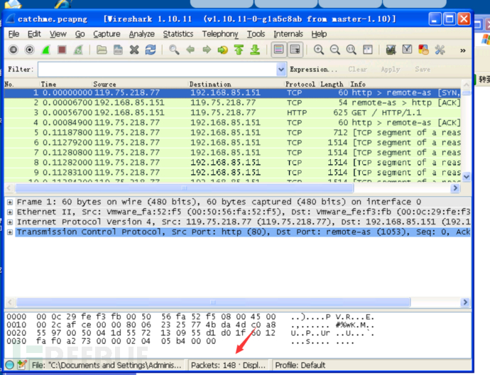 这里我们利用TCP流跟踪,对这个会话进行完整分析。