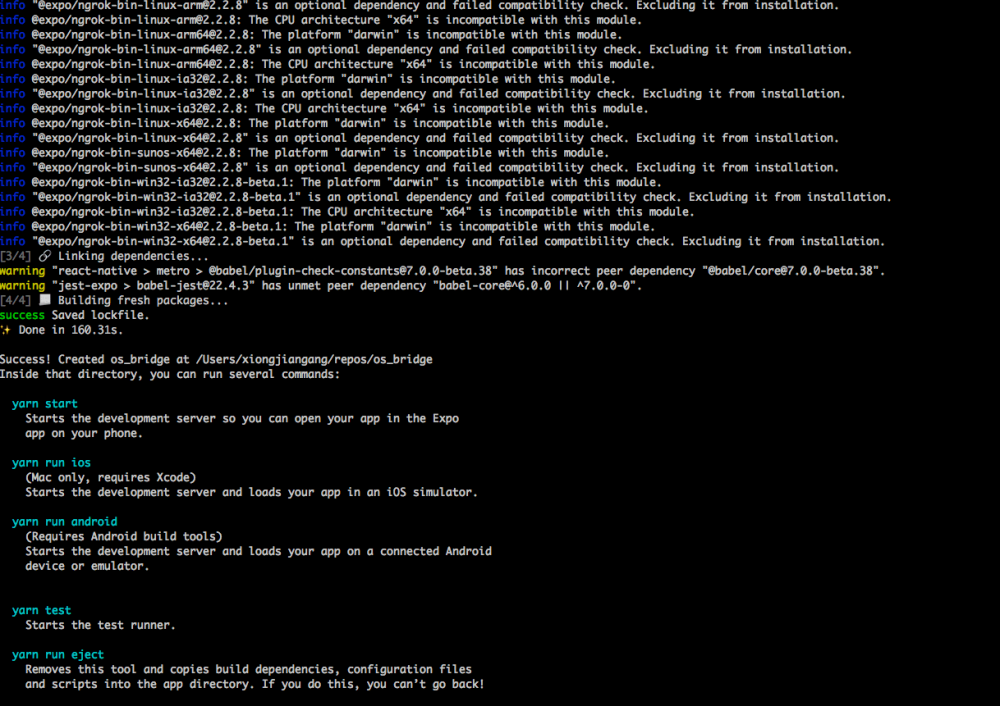 本篇介绍的方式相较于前篇,不需要安装,配置 Xcode 和 Android Studio 等工具和环境,只需要安装 Node ,另外推荐使用 Yarn 代替 Npm 进行安装包管理(可选):