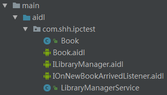 注意,为了方便开发,我们一般把 AIDL 相关的文件放在同一包中,这样当客户端是另一个应用时可方便的把整个包复制到客户端工程中。最终的AIDL文件包如下: