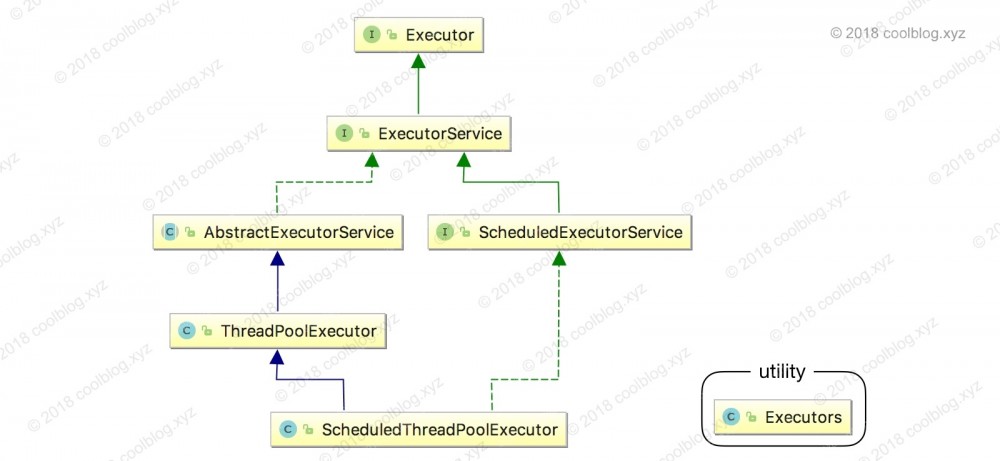 线程池所涉及到的接口和类并不是很多,其继承体系也相对简单。相关继承关系如下:
