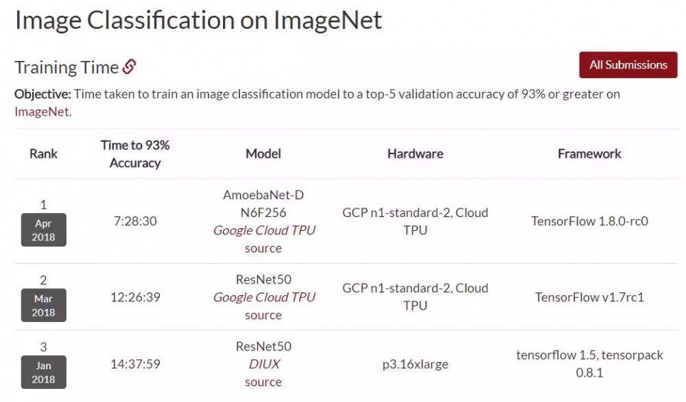 DAWNBench 基准结果提交地址:https://github.com/stanford-futuredata/dawn-bench-entries