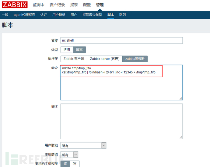 9. 然后在Zabbix服务器上创建一个脚本,用于反弹shell的建立。