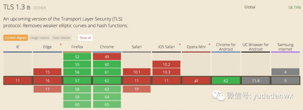 目前主流的浏览器都支持 TLS 1.3 版本,具体见下图: