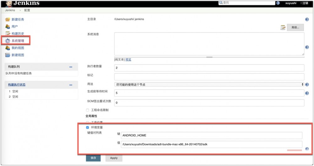 系统管理 -> 系统设置 ,填写Android 环境变量