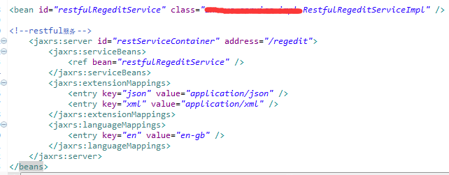 在applicationContext-server.xml文件中实现Java API接口发布为Rest接口时候的具体映射。