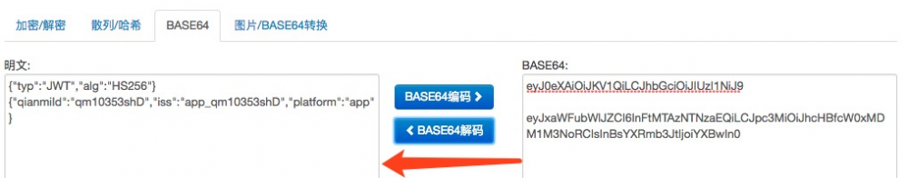 一般是编码解码是为了方便以字节的方式表示数据,便于存储和网络传输。整个 jwt 串会被置于 http 的 Header 或者 url 中,为了不出现乱码解析错误等意外,编码是有必要的。在 jwt 中以 . 分割的三个部分都经过 base64 编码(secret 部分是否进行 base64 编码是可选的,header 和 payload 则是必须进行 base64 编码)。注意,编码的一个特点:编码和解码的整个过程是可逆的。得知编码方式后,整个 jwt 串便是明文了,随意找个网站验证下解码后的内容: