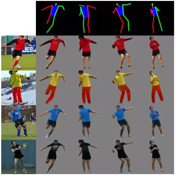 图 1:变分 U-Net 模型学习从左边的查询中进行推理,然后生成相同外观的目标在第一行所示的不同姿态下的图像。